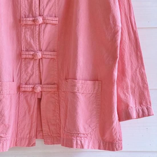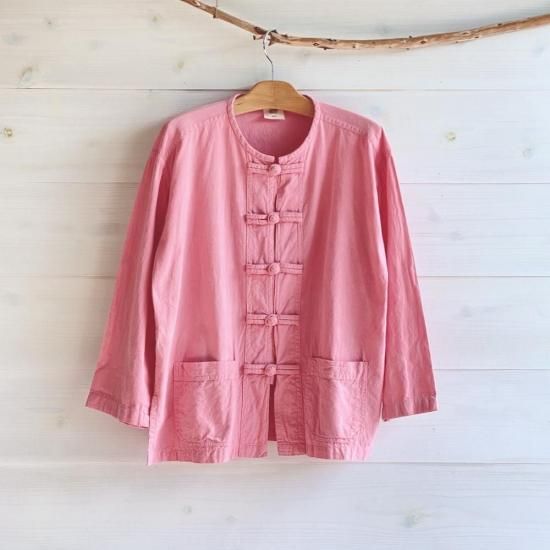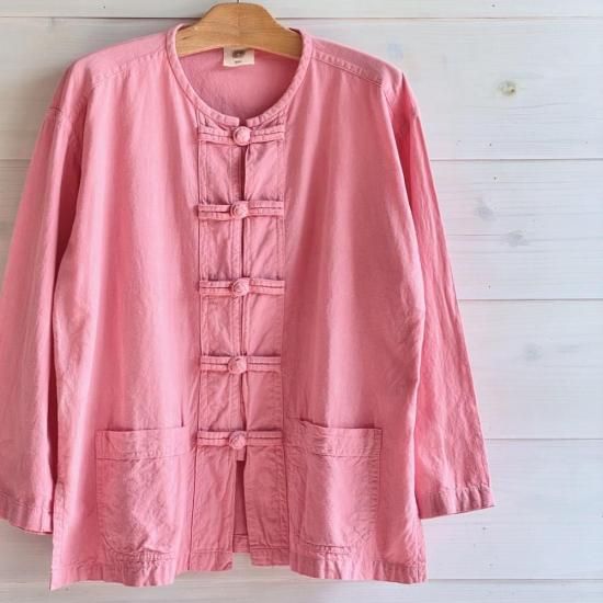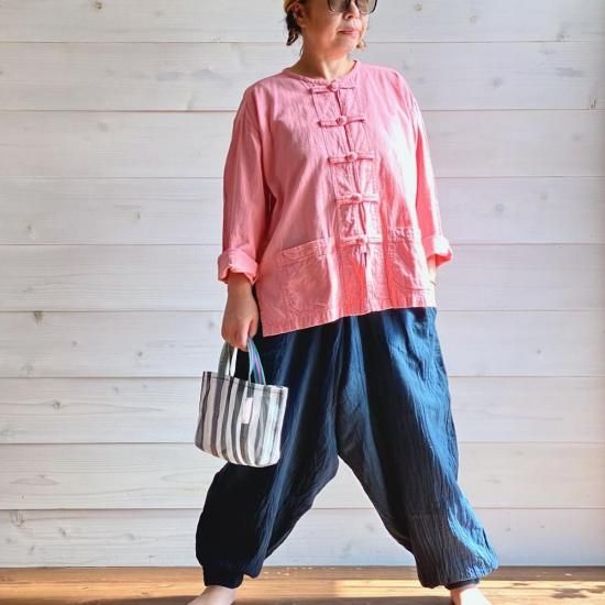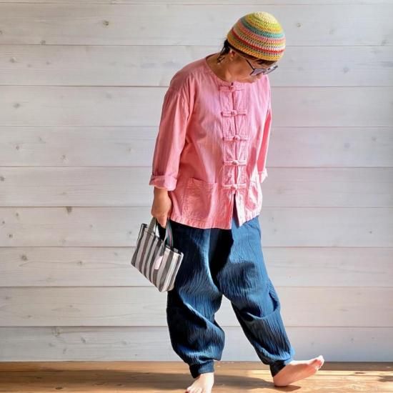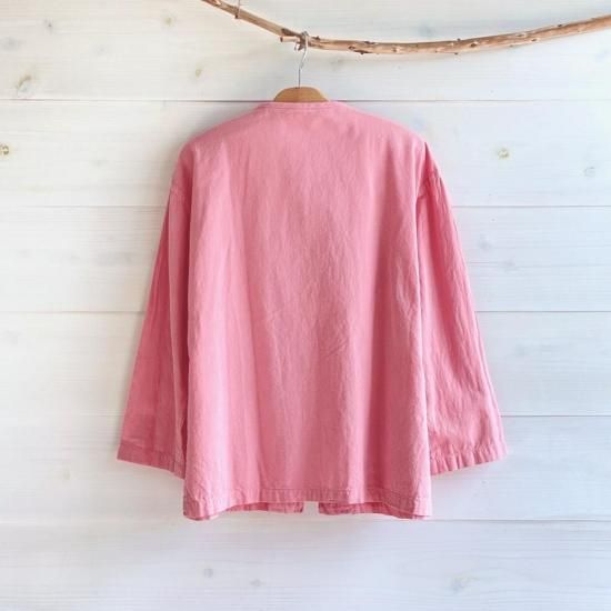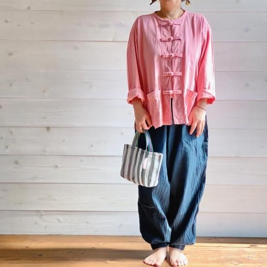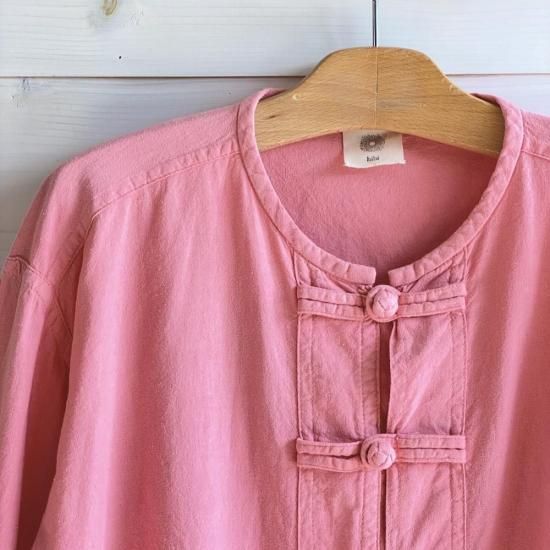 作家chillnokiがチェンマイを旅した時にあちこちで目にしたという、タイの野良着"モーホーム" 男性も女性も着る作業着です。布で出来たボタンで留めて着ても、開けてカーディガンのように着ても可愛い、ユニセックスで着ていただけるトップスです。こちらはユニセックスのMサイズ。