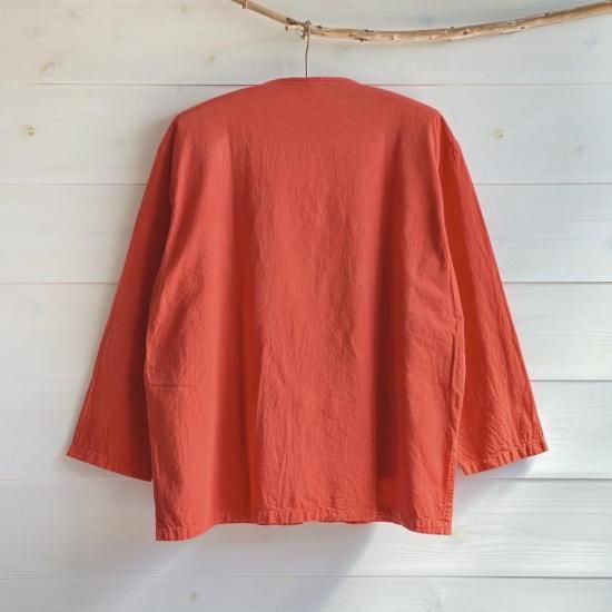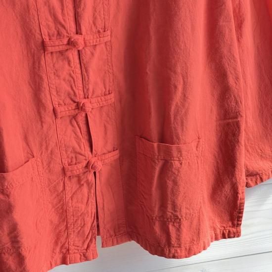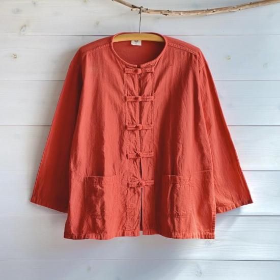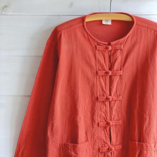 作家chillnokiがチェンマイを旅した時にあちこちで目にしたという、タイの野良着"モーホーム" 男性も女性も着る作業着です。布で出来たボタンで留めて着ても、開けてカーディガンのように着ても可愛い、ユニセックスで着ていただけるトップスです。こちらはユニセックスのXLサイズ。