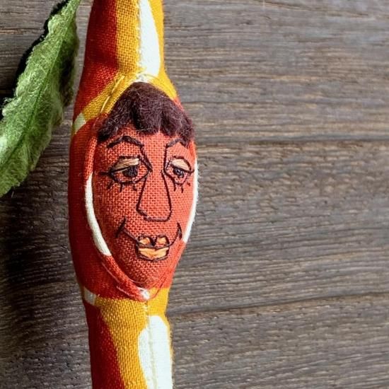 豆ずきんは、それぞれのお洒落な洋服(鞘)着て、鞘からぴょこっと覗いた豆がお顔です。お顔は細かい刺繍で縫われています。家族や友人誰かに似てるなんてこともよく教えてもらいます^^1人ずつ個性のあるお顔。選んでください。お出かけに連れて行くもよし、家で飾るもよし。