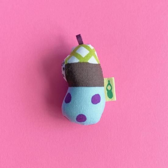 豆ずきんは、それぞれのお洒落な洋服(鞘)着て、鞘からぴょこっと覗いた豆がお顔です。お顔は細い糸で刺繍されています。家族や友人誰かに似てるなんてこともよく教えてもらいます^^1人ずつ個性のあるお顔。選んでください。お出かけに連れて行くもよし、家で飾るもよし。