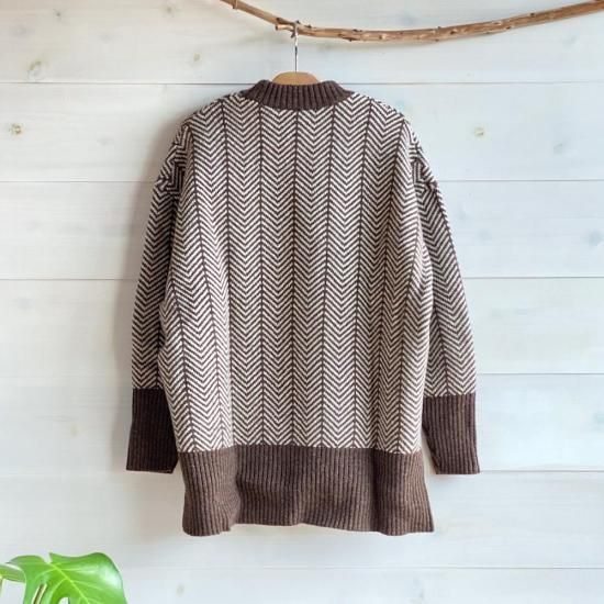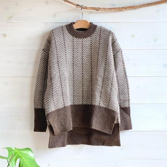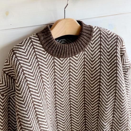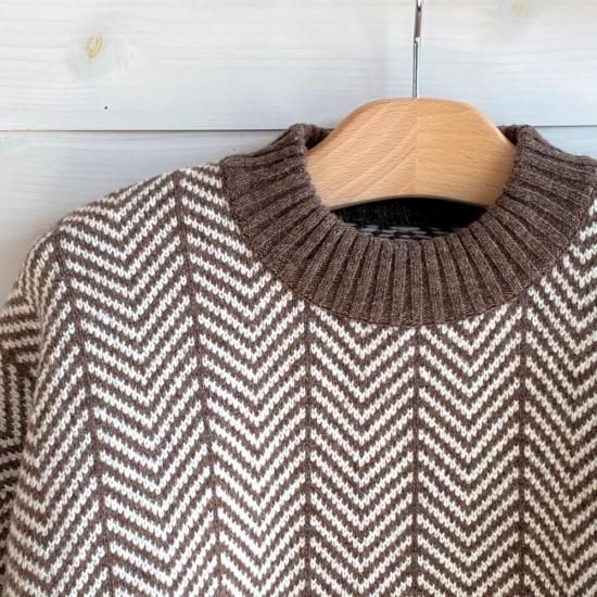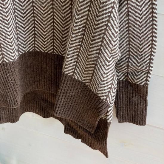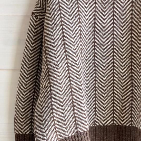 -NATURAL COLORED WOOL ヘリンボーンコモドニット-ブラウン