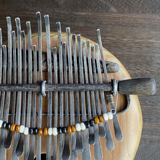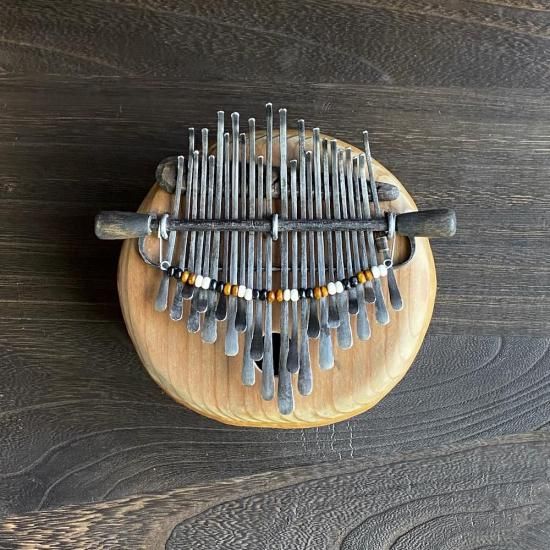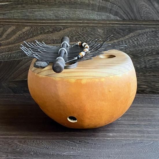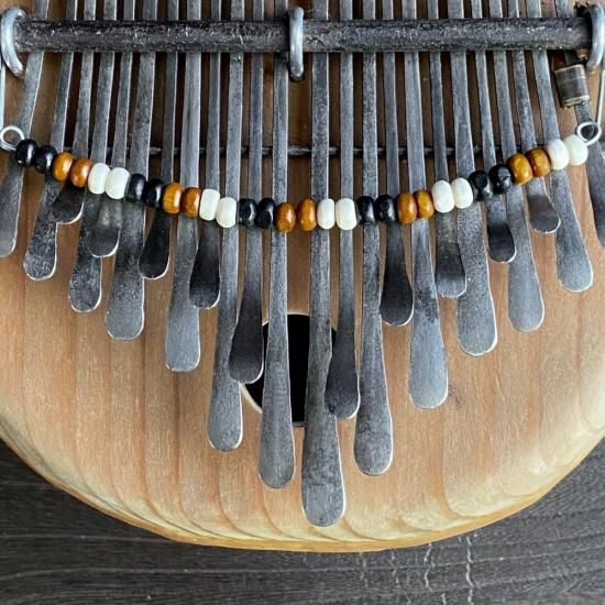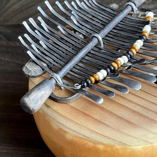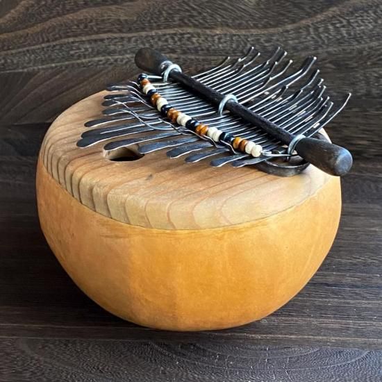 両手のひらで覆うくらいの大きめのひょうたんカリンバ。手のひらに当たるひょうたん部分の触り心地がさらさらと気持ちいいです。