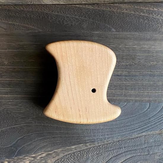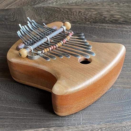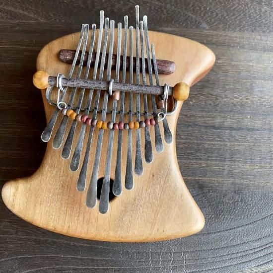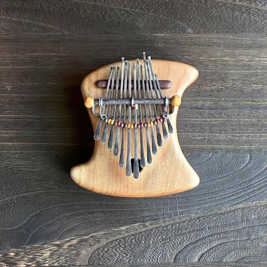 これは何の形??手裏剣?オバケ?とにかく、持ちやすい形の桜の木でできたカリンバ。