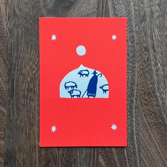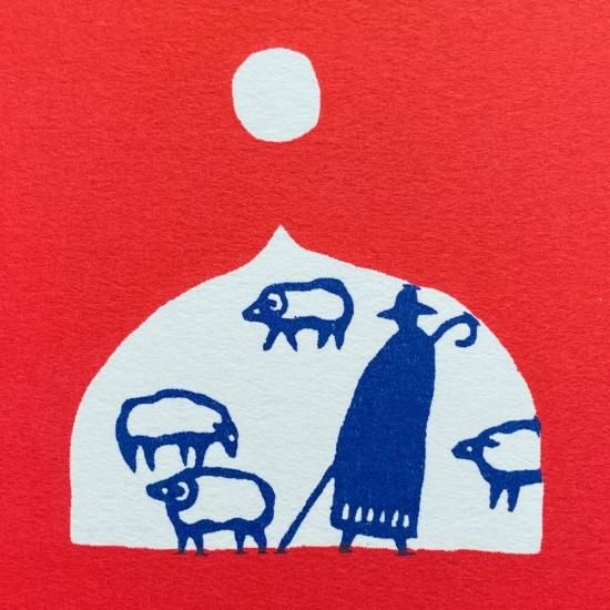 型染の意匠を絵柄に組込み温かみのあるデザインと特殊な印刷で型染や版画の風合いに仕上げました。